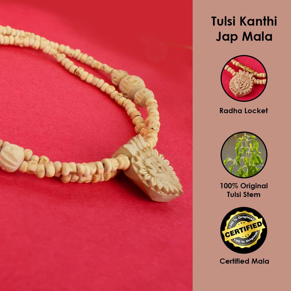 • Package Contains: 1 Pc 100% Original Bead Tulsi Kanthi Mala With Radha Name Locket