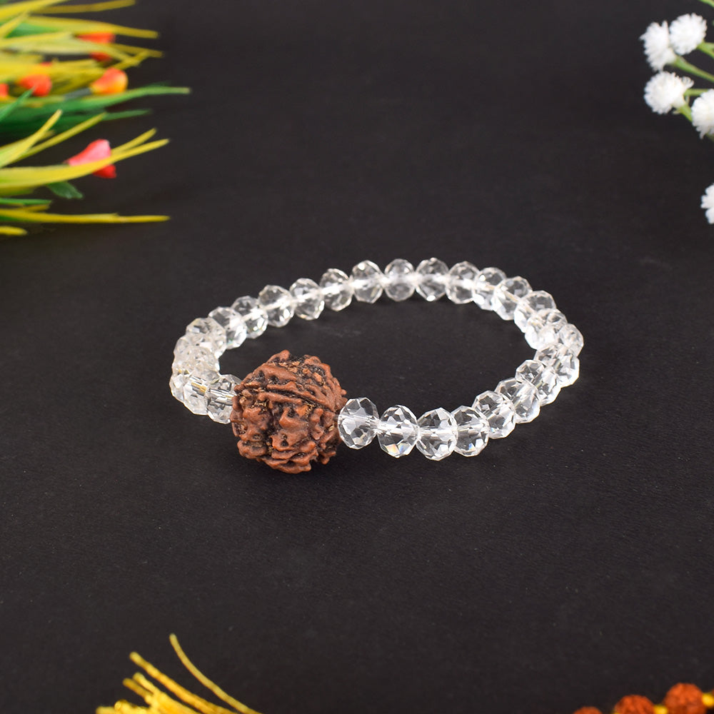 • Item Name: 5 Mukhi Rudraksha & Sphatik Bead Bracelet for Peace and Spiritual Growth