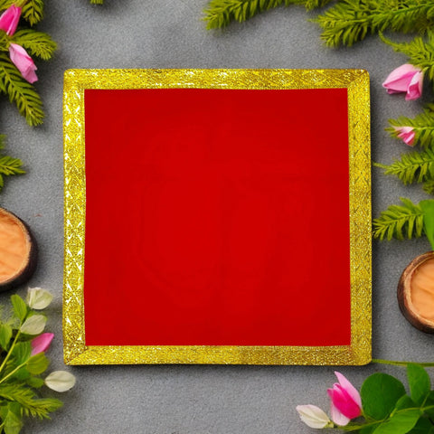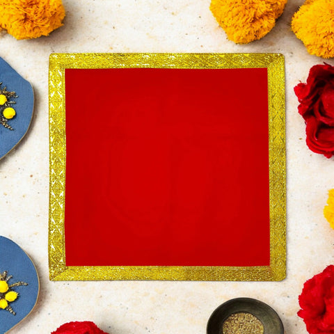 Swastik Red Velvet Puja Aasan