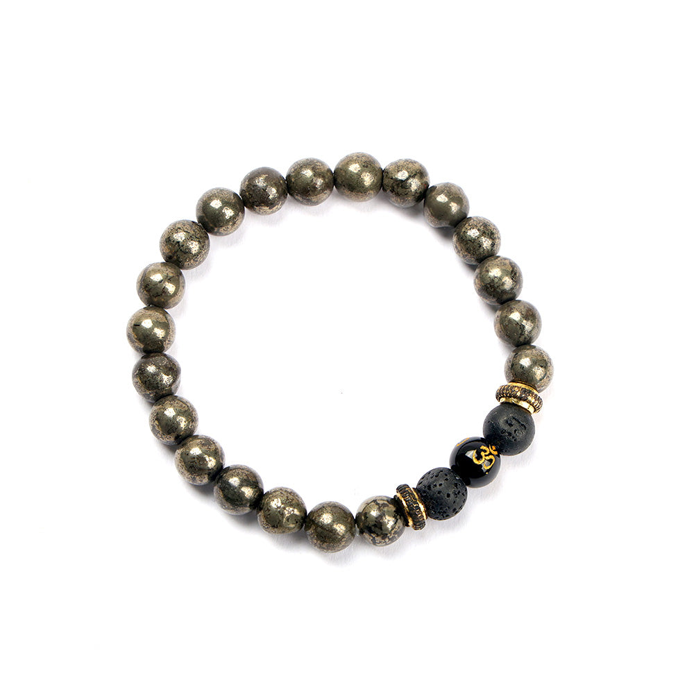 • Item Name: Om Raw Pyrite with Lava Healing Stone Bracelet