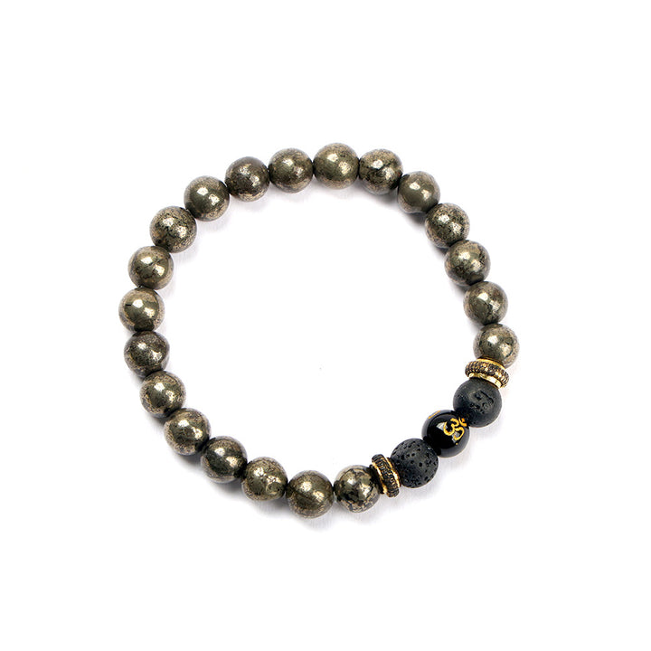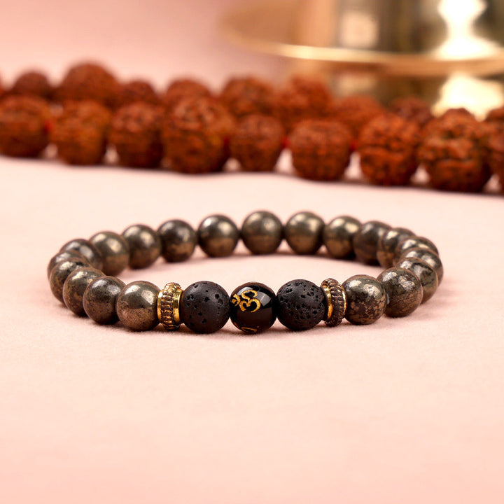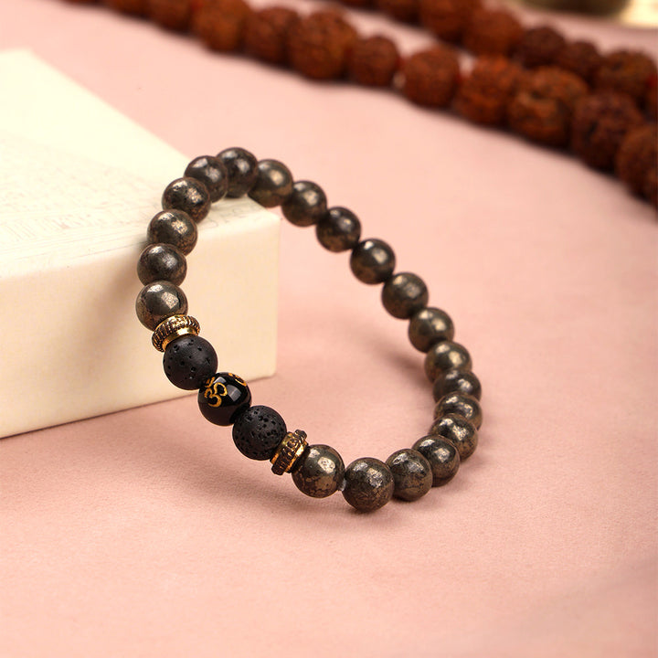 Om Raw Pyrite Bracelet | Lava Stone Om Bracelet | Pyrite Wealth Bracelet | Grounding Healing Stone Bracelet | Spiritual Om Crystal Bracelet | Prosperity Energy Jewelry