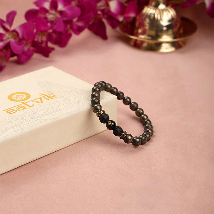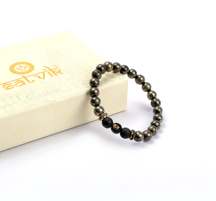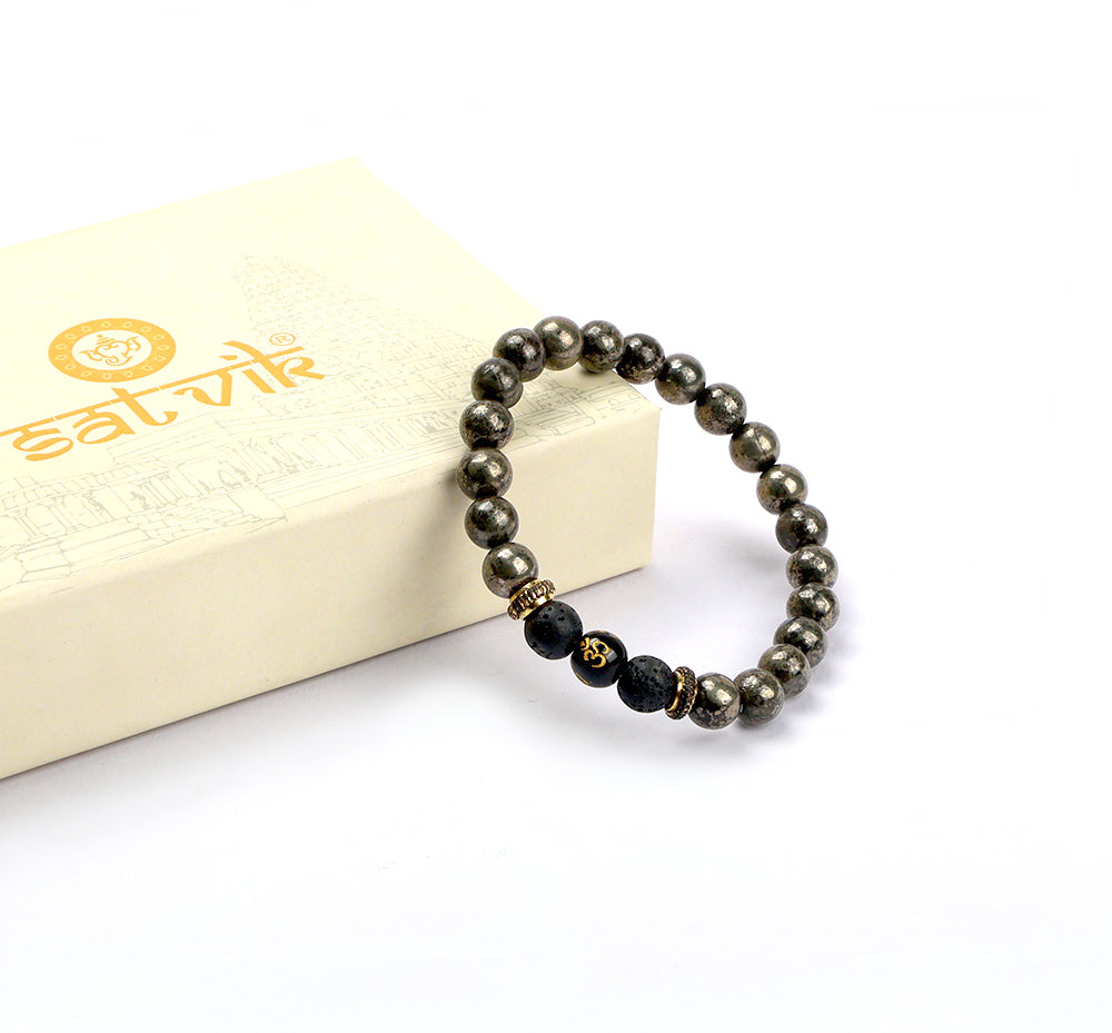 Buy Om Raw Pyrite Lava Healing Stone Bracelet | Satvikstore.in – satvikstore.in