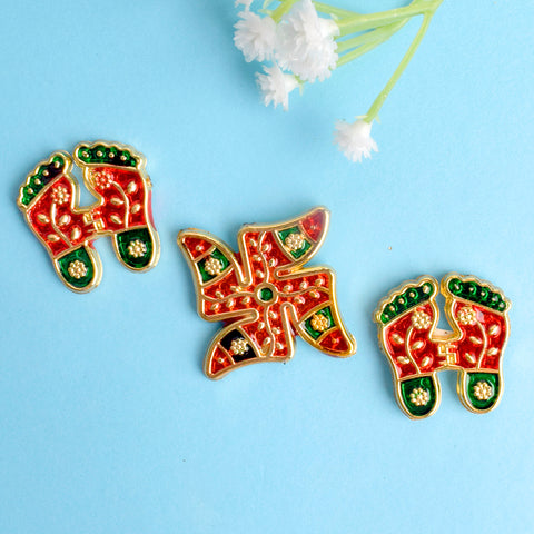 For those who appreciate the simplicity of tealights and candles, satvikstore.in offers an array of options, each exuding a unique charm. Decorating your home becomes a spiritual journey with Laxmi Charan and Swastik stickers, ensuring that auspiciousness permeates every corner.