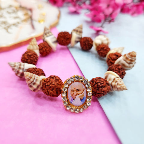 Preserve the divine moments with Guruji in our beautifully designed photoframes. These frames encapsulate the serenity and blessings that Guruji bestowed upon his followers. - Neck Mala with Guruji Swaroop: