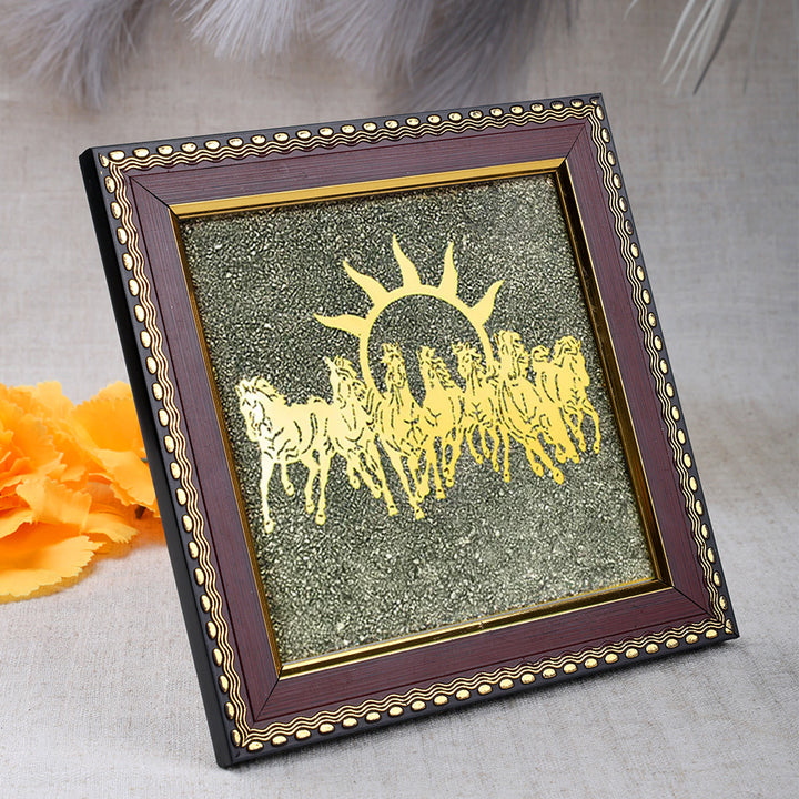 7 Horse Frame with Pyrite Bracelet | Triple Protection Combo | Vastu Home & Office Decor | Success & Positivity Symbol
