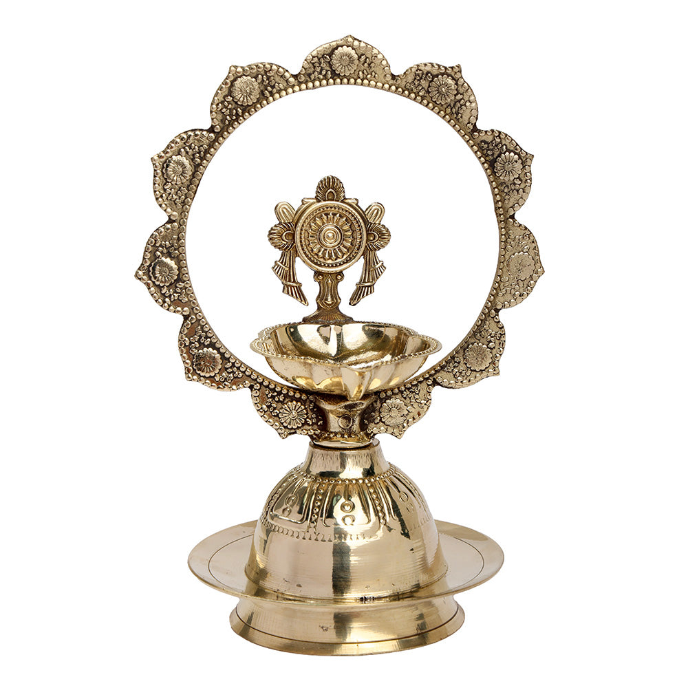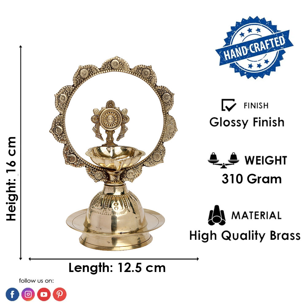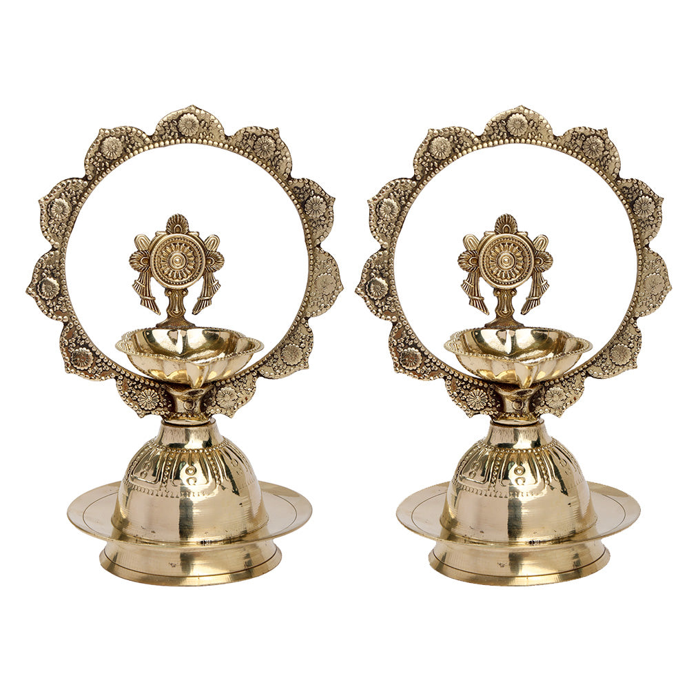 • Item Name: Brass Mor Kiran with Chakra Diya and Shankh Diya Pair