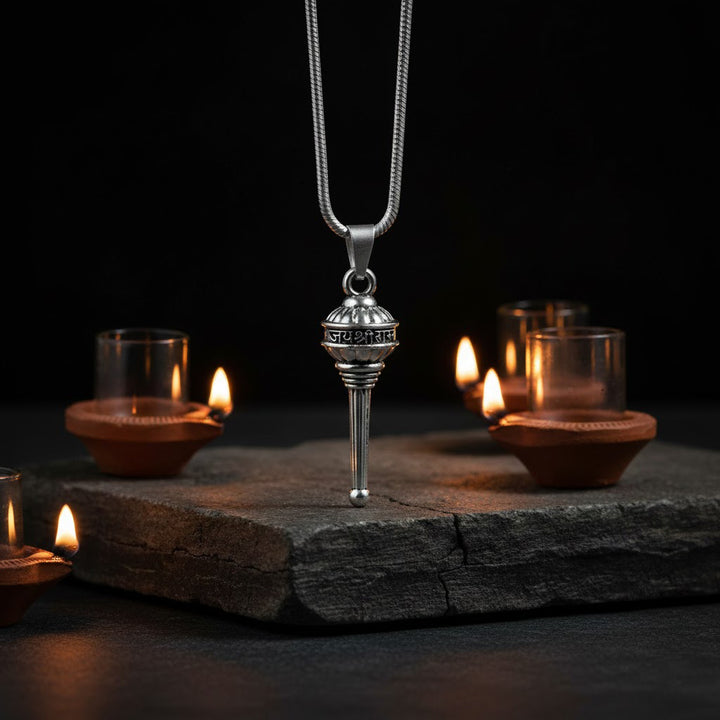 Silver Plated Hanuman Gada Pendant with “Jai Shree Ram” Engraving