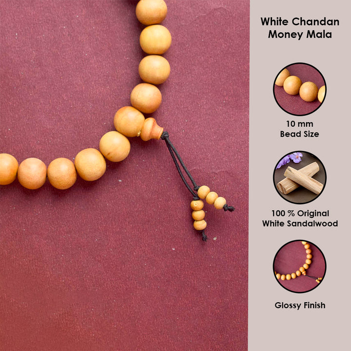 Buy 27 Bead White Chandan Money Mala for Wealth | Satvikstore.in – satvikstore.in
