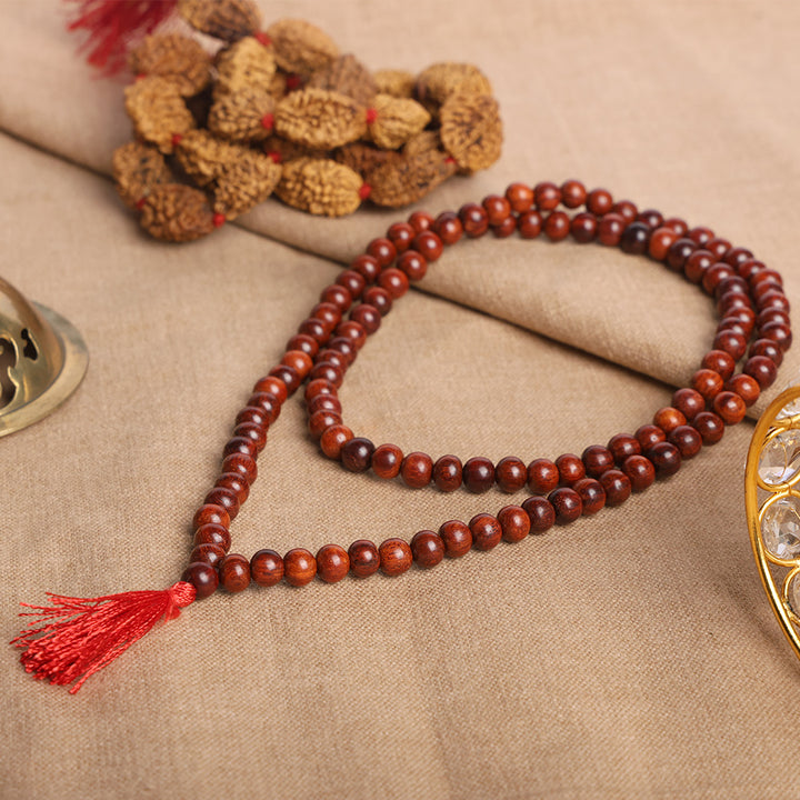 Red Sandalwood Jap Mala | Chandan Mala for Meditation | Natural Red Sandalwood Rosary | Handmade Chandan Beads Mala | Sandalwood Mala for Prayer | Mala for Hanuman Mantra |