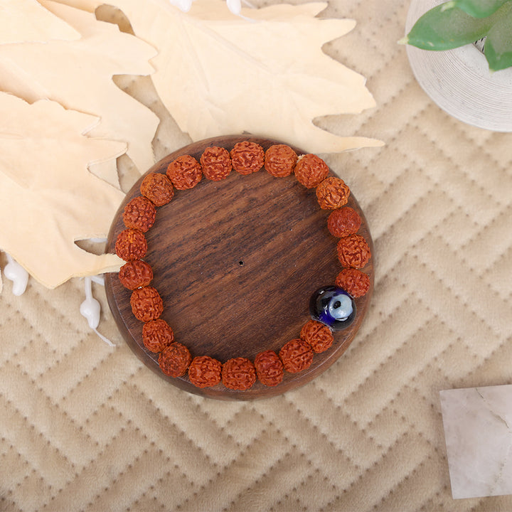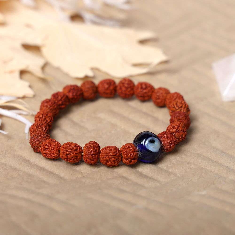 8mm Rudraksha Bracelet with Evil Eye Bead for Positivity