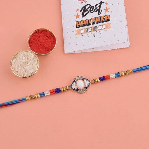 Stone Rakhi: Elevate the festivities with our stone rakhi collection, featuring mesmerizing stones that add a touch of grace and splendor. These rakhis symbolize the strength and resilience of your sibling relationship.