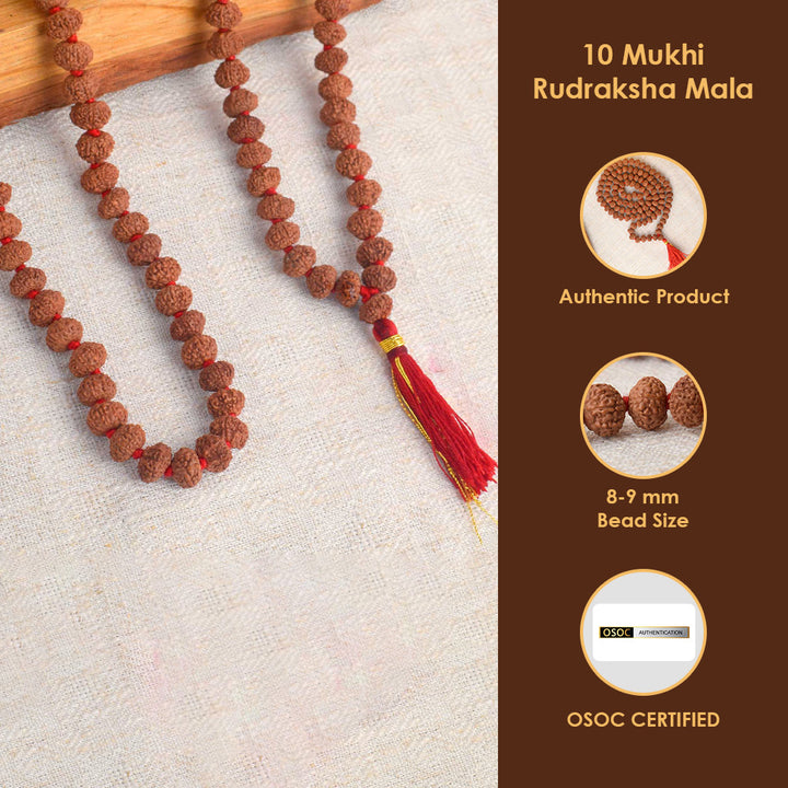 Buy 10 Mukhi Rudraksha Mala for Divine Protection | Satvikstore.in – satvikstore.in