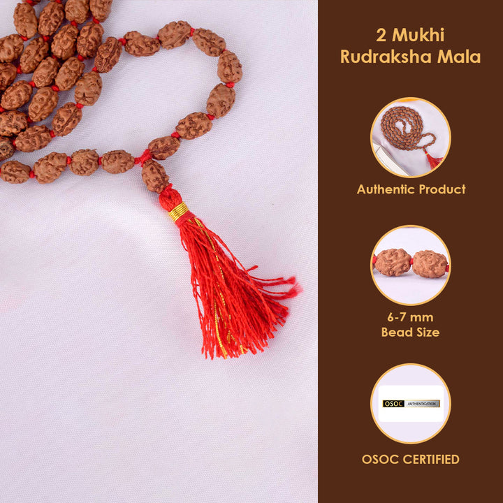 Buy 2 Mukhi Rudraksha Mala for Relationship Balance | Satvikstore.in – satvikstore.in