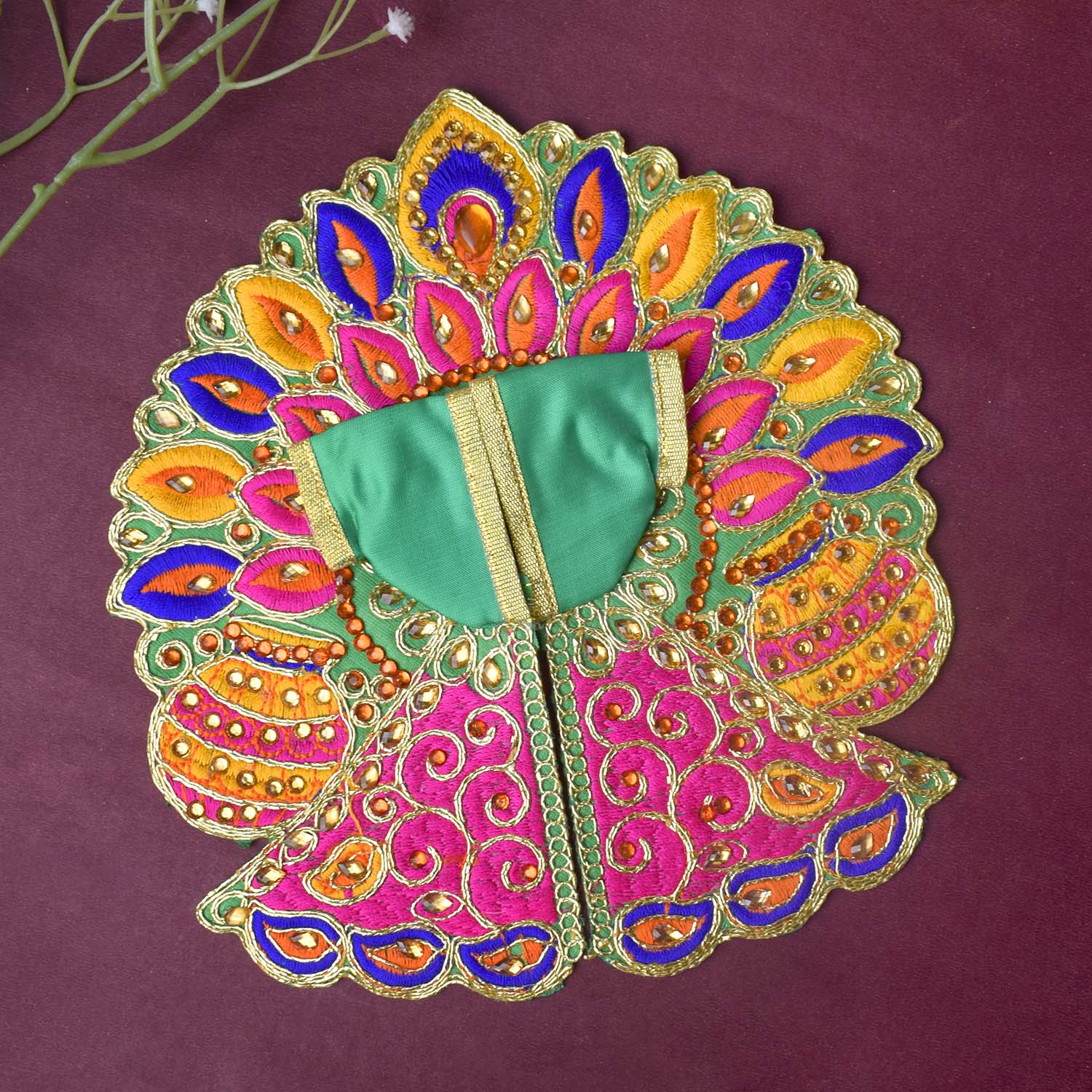 laddu gopal dress | colourful krishna dress | matka embroidered gopal dress | leaf design kanha ji vastra | stonework laddu gopal poshak | assorted gopal dress | vibrant pooja clothes | bal gopal festive dress | handmade deity attire | designer krishna vastra | temple pooja items | janmashtami krishna dress | fancy gopal outfit | kanha ji special vastra | embroidered deity dress