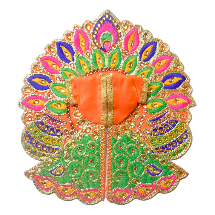 Wrap your divine Laddu Gopal in radiant elegance with this stunning dress featuring colourful matka and leaf embroidery highlighted with sparkling stonework. Each piece is a unique creation, crafted in assorted vibrant shades to add a festive glow to your pooja space.