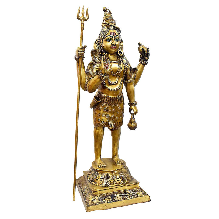 • Material: The Large Brass Standing Lord Shiva Statue - Idol with Trishul & Damaru is made from Pure Brass Virgin Material.