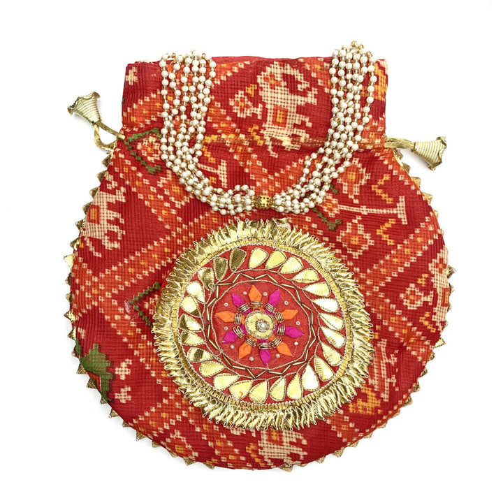• Material: Made from High quality Fabric with Bandhani  All over the Pouch, Perfectly Stitched Wedding Pouch.