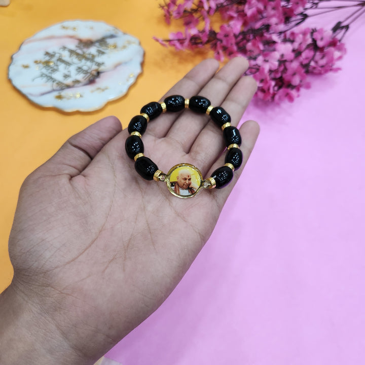 • Item Name: Black Oval Pearl Bracelet with Jai Guruji Swaroop Handmade Bracelets for Men and Women