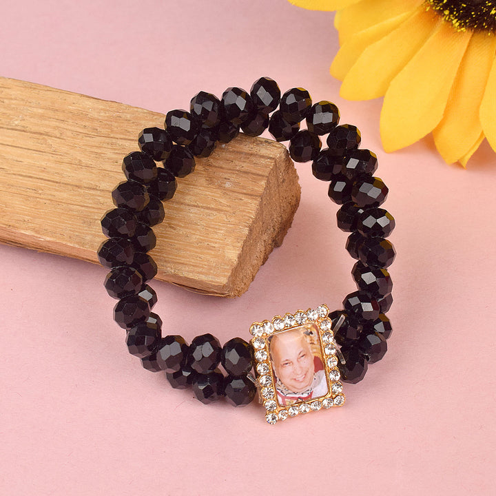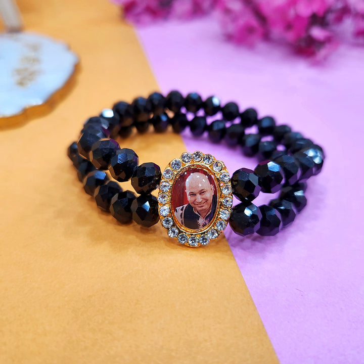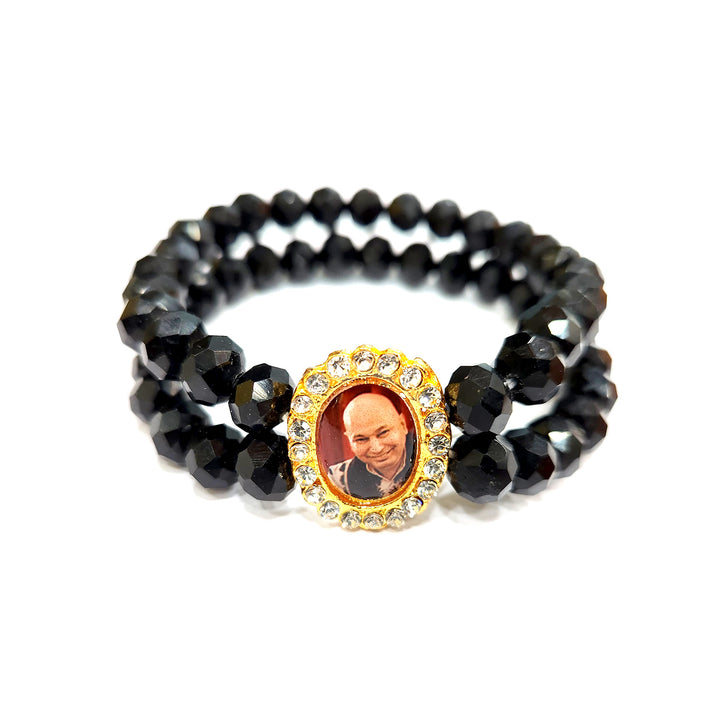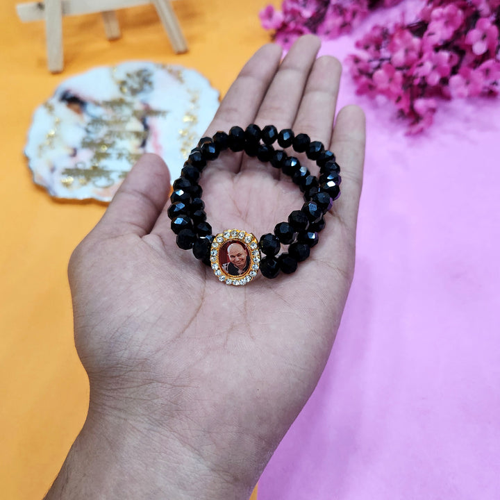• Item Name: Black Round Pearl Bracelet with Jai Guruji Swaroop Handmade Bracelets for Men and Women