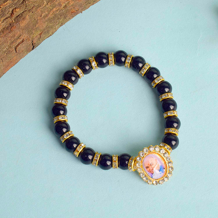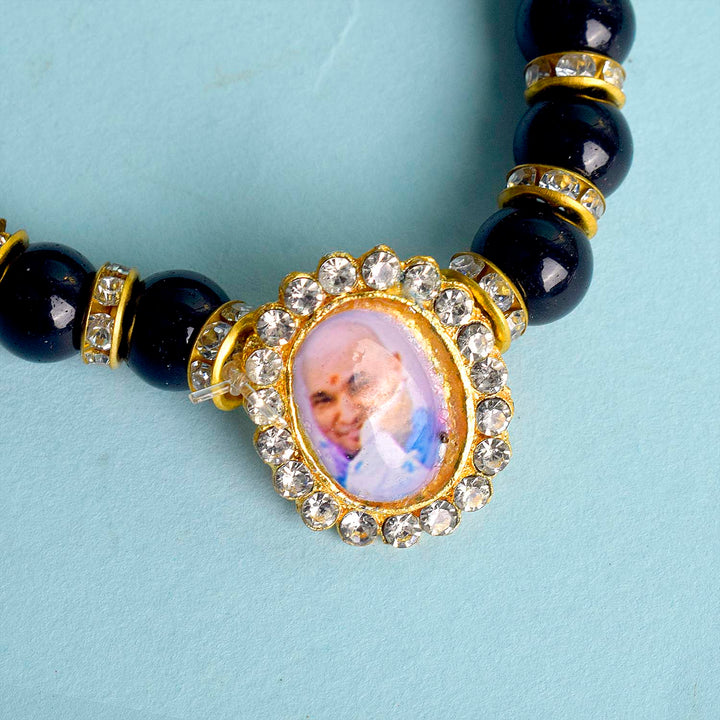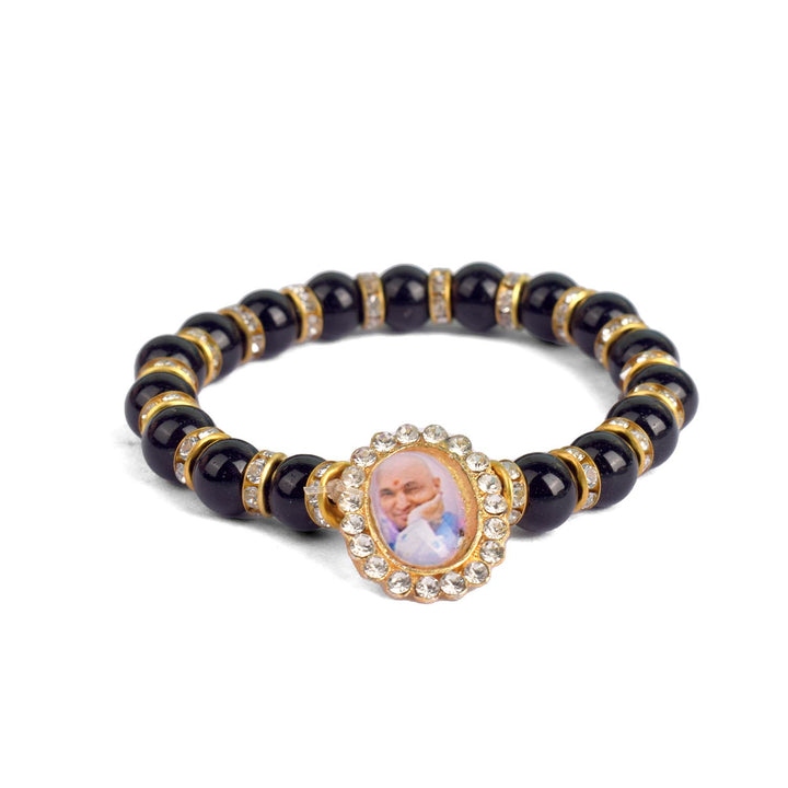 Buy Online | Black Golden Stud Single Layer Guruji Swaroop Bracelet | satvikstore.in
