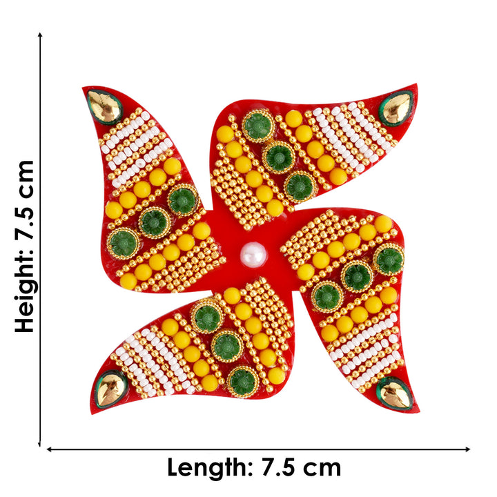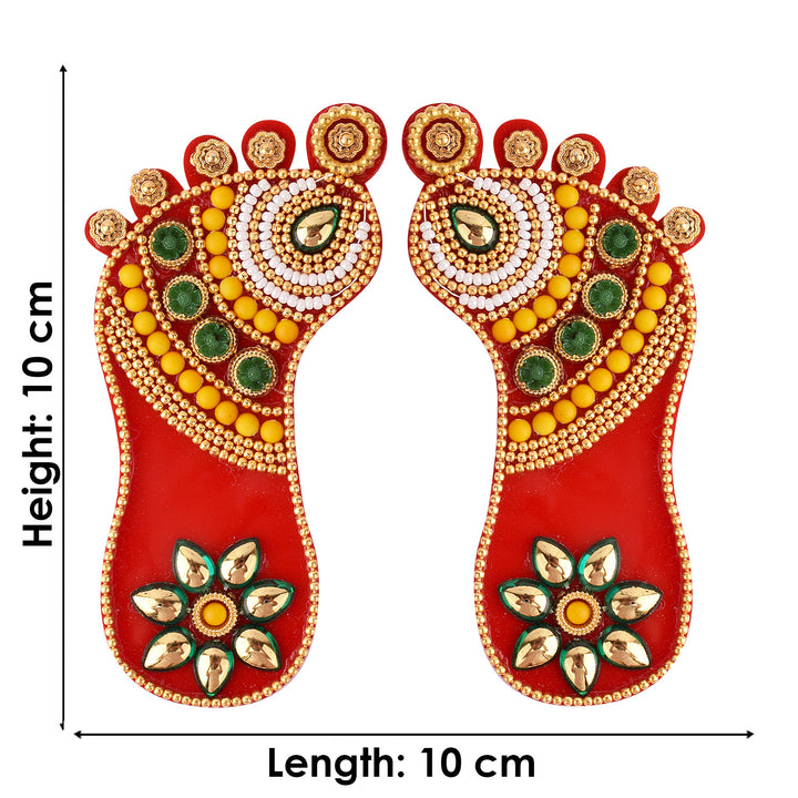 • Product Details: Material: Hight Quality Material, Dimensions:  Charan: Height: 10cm, Length: 10cm, Swastik: Height: 7.5cm, Length: 7.5cm, Weight: 100gram, Finish Type: Glossy.