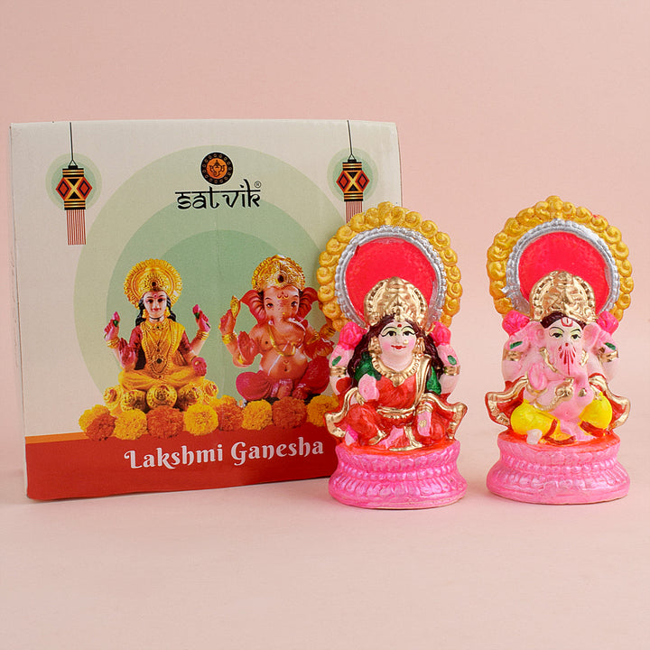 • Product Details: Material: Clay Dimensions: Ganesha: Height: 10cm, Length: 5cm, Width: 3.8cm, Laxmi: Height: 10cm, Length: 5cm, Width: 3.8cm, Total weight: 195gram, Finish Type: Glossy.