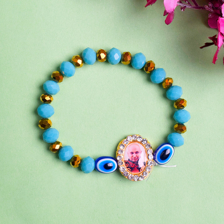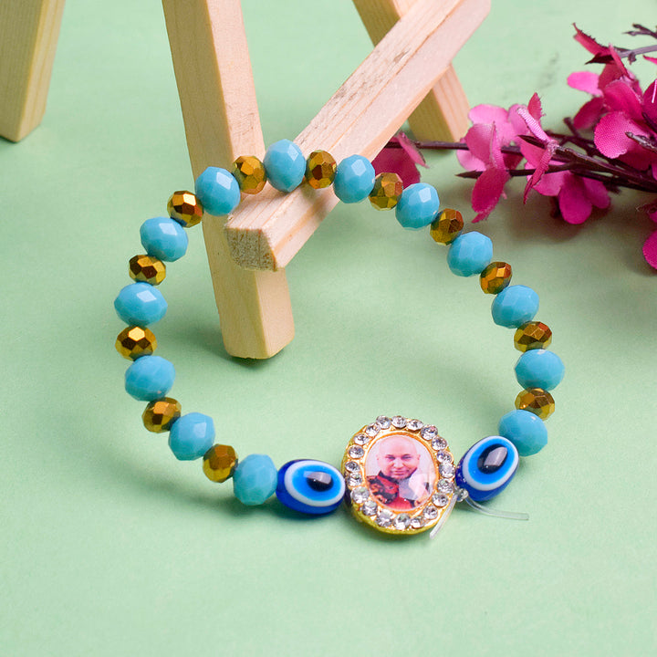 Blue Evil Eye Beads Bracelet with Jai Guruji Swaroop Handmade Bracelets for Men and Women