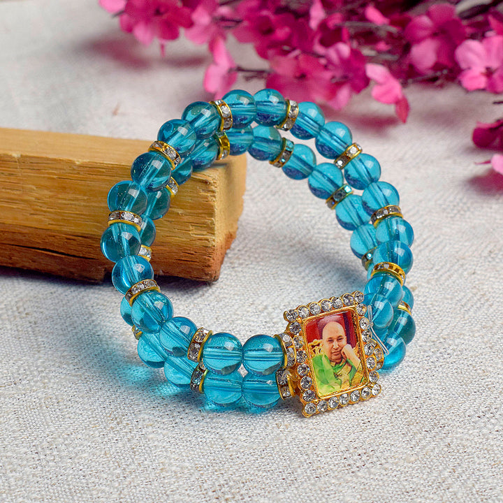 • Item Name:  Blue Round Pearl Bracelet with Jai Guruji Swaroop Handmade Bracelets for Men and Women