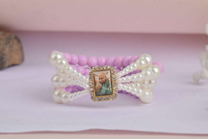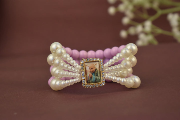 Buy Online | Blush Orchid White Pearl Guruji Swaroop Bracelet | satvikstore.in