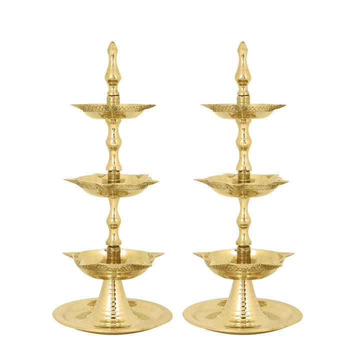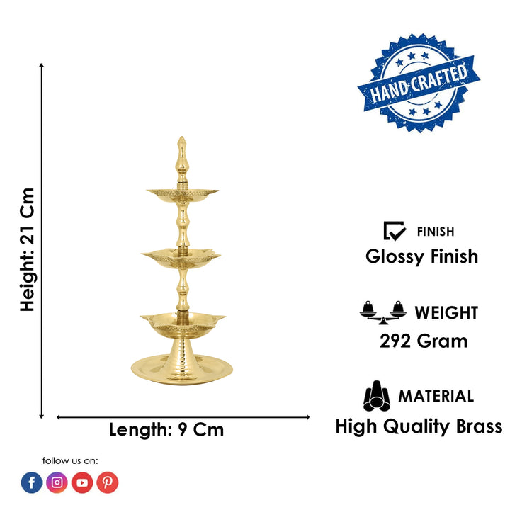 Brass 3 Step Diya | Kerala Samai Deepam | Brass Inauguration Lamp | Traditional Pooja Diya | Kerala Style Brass Diya | Brass Deepam for Pooja | Indian Ritual Brass Lamp | South Indian Temple Lamp | Brass Pooja Accessories | Brass Oil Lamp | Satvikstore Brass Diya | Handcrafted Brass Pooja Diya