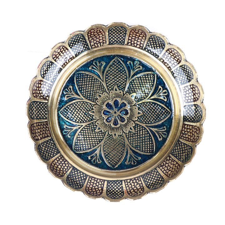 Brass Colored Turtle with Nakashi Plate | Brass Turtle with Nakashi Tray | Blue Nakashi Art Turtle | Feng Shui Turtle with Nakashi Plate | Turtle for Prosperity and Protection | Brass Turtle for Good Luck | Nakashi Plate Decor | Vastu Turtle with Plate | Blue Feng Shui Turtle | Handmade Brass Turtle | satvikstore turtle