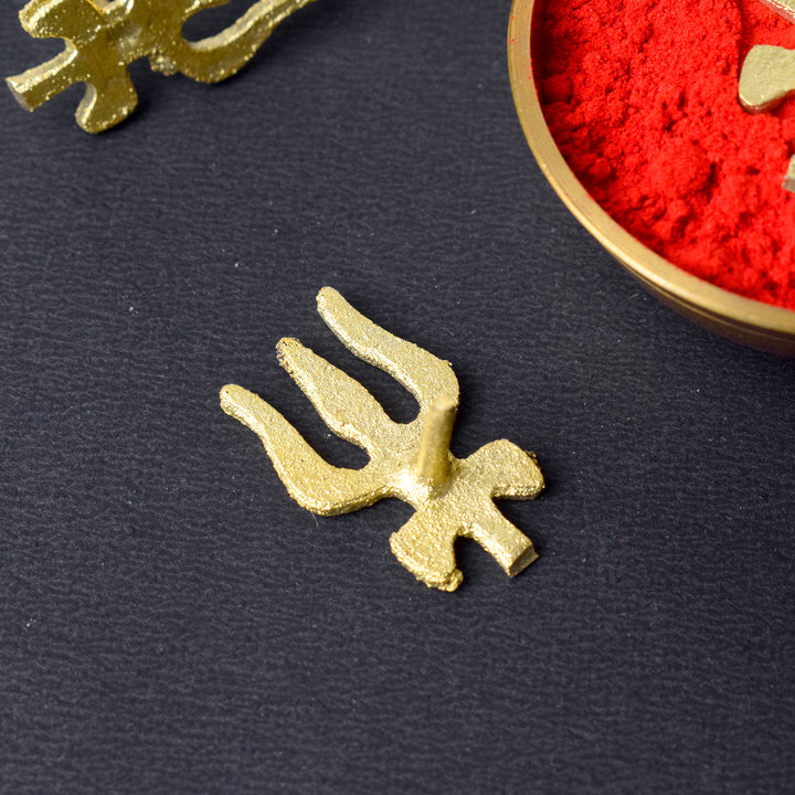 Brass Trishul with Damru Tilak Stamp Deity Ornament