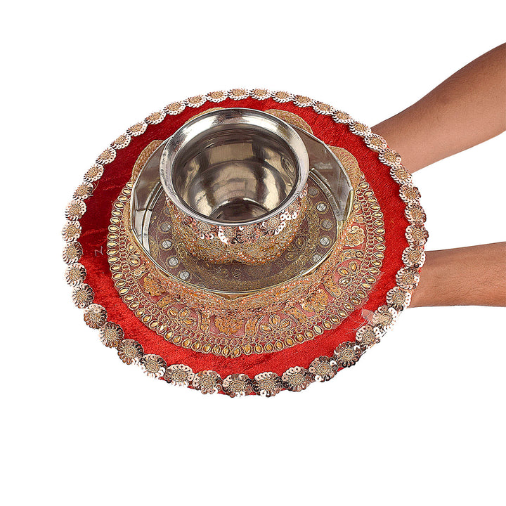 Bright Red Karwa Chauth Thali Set | satvikstore.in