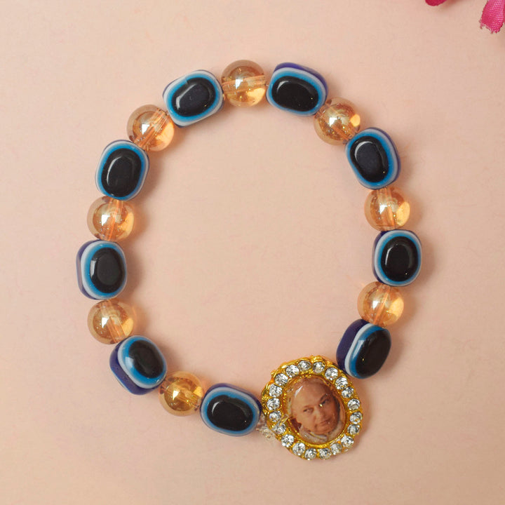 • Item Name: Brown Beads Evil Eye Pearl Bracelet with Jai Guruji Swaroop Handmade Bracelets for Men and Women