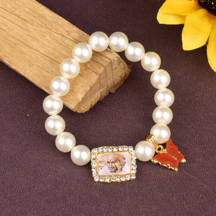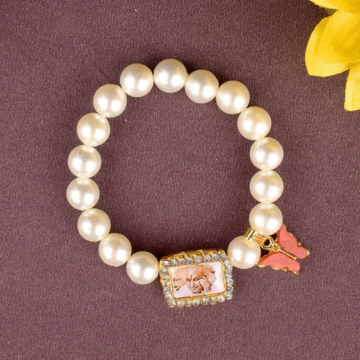 Butterfly White Beads Bracelet with Jai Guruji Swaroop Handmade Bracelets
