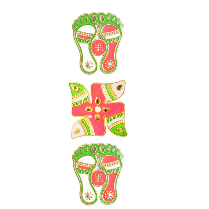 Item Name: Celebratory Glow Swastik and Charan Paduka Stickers  Set of 3