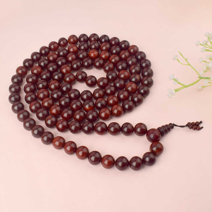 Red Chandan Mala | 18mm Sandalwood Mala | Lal Chandan Mala 108+1 Beads | Original Red Sandalwood Mala | Red Chandan Japa Mala | Chandan Mala for Meditation | Spiritual Chandan Mala | Red Chandan Beads Mala | Chandan Mala for Pooja | Handmade Red Sandalwood Mala
