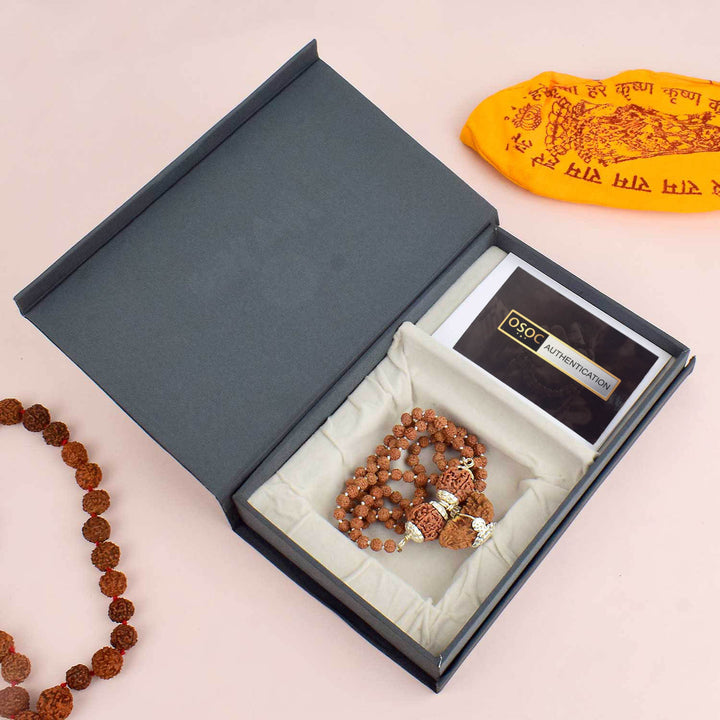 • Package Contains:  Certified Nepali 1, 6 & 7 Face Rudraksha Mala (Mukhi Kavach Silver Capping)