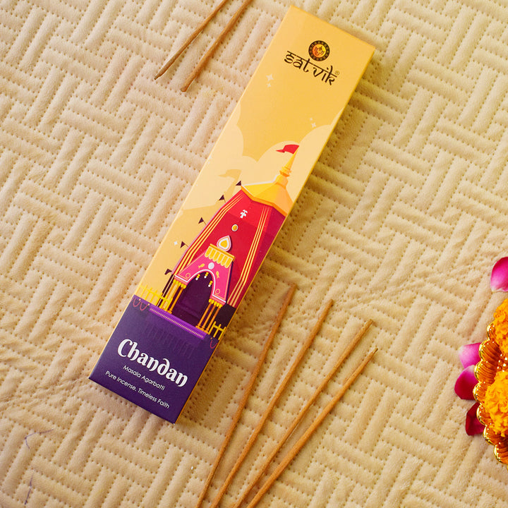 Chandan incense sticks | Pure masala agarbatti | Sandalwood incense sticks | Natural chandan fragrance | Handcrafted pooja incense | Chandan dhoop sticks | Spiritual incense for rituals | Masala agarbatti chandan | Meditation incense sticks | Herbal sandalwood incense |