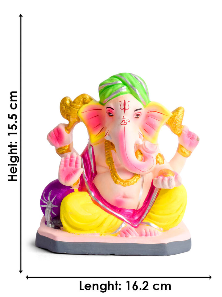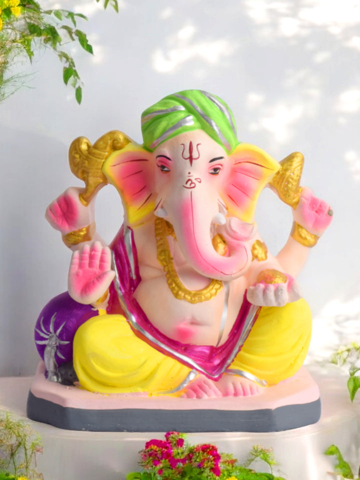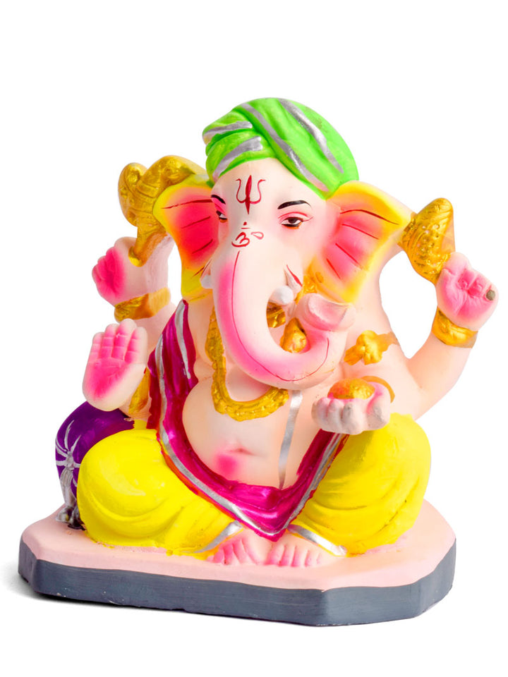 Eco Friendly Ganesha statues are made of 100% biodegradable and eco-friendly material by using Shadu Mati Clay Mitti, which dissolves easily in water. The colours used are also natural, and they decompose and dissolve in water easily. Although they have been made all across India, West Bengal and Maharashtra often employ skilled artisans to make them.