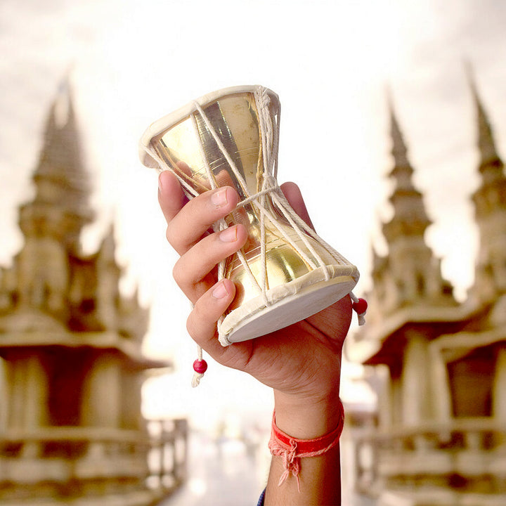 Buy Cosmic Brass Damru – Sacred Drum for Lord Shiva Worship at Satvikstore.in – satvikstore.in
