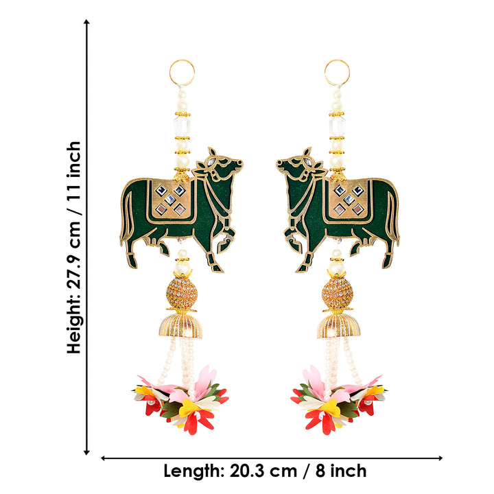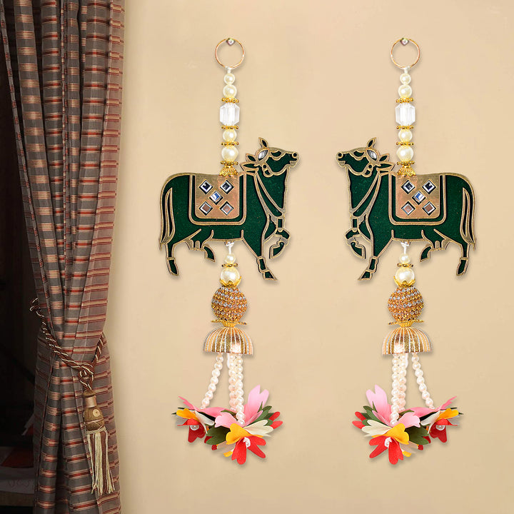 cow side door hanging | acrylic cow wall décor | floral cow wall hanging | mirror and bead toran | tassel side hanging | traditional pooja décor | spiritual home decoration | gopashtami décor | navratri pooja decoration | handmade wall décor