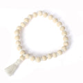 • Material : Made from High Quality Tulsi Beads to maintain the purity of Jaap Mala The beads is woven in White Cotton Thread, A colored Fringe is also joint in the Mala.