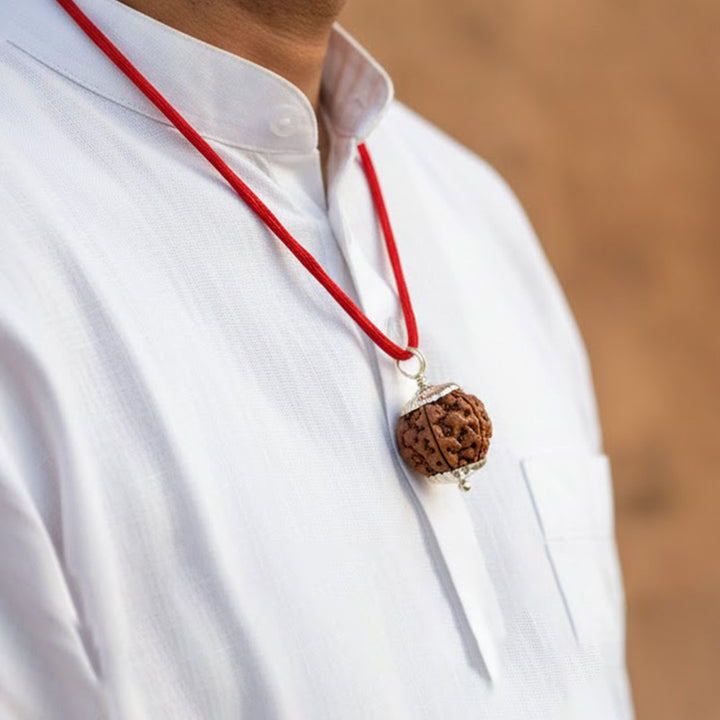 Crafted with a natural Panch Mukhi Rudraksha bead and finished with a pure silver cap, this pendant is ideal for daily wear, meditation, and spiritual practices. It helps balance the mind, calm emotions, and protect the wearer from negative energies while supporting overall well-being.