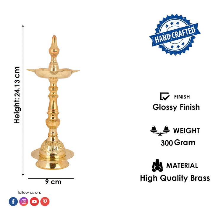 9.5 Inch Embossed Kalash Kerala Brass Diya | Kerala Brass Diya | Embossed Kalash Diya | Traditional Kerala Diya | Brass Kalash Lamp | Spiritual Brass Lamp | Pooja Diya | Kerala Temple Lamp | Brass Oil Lamp | Indian Ritual Lamp | Embossed Brass Diya | Temple Deepam