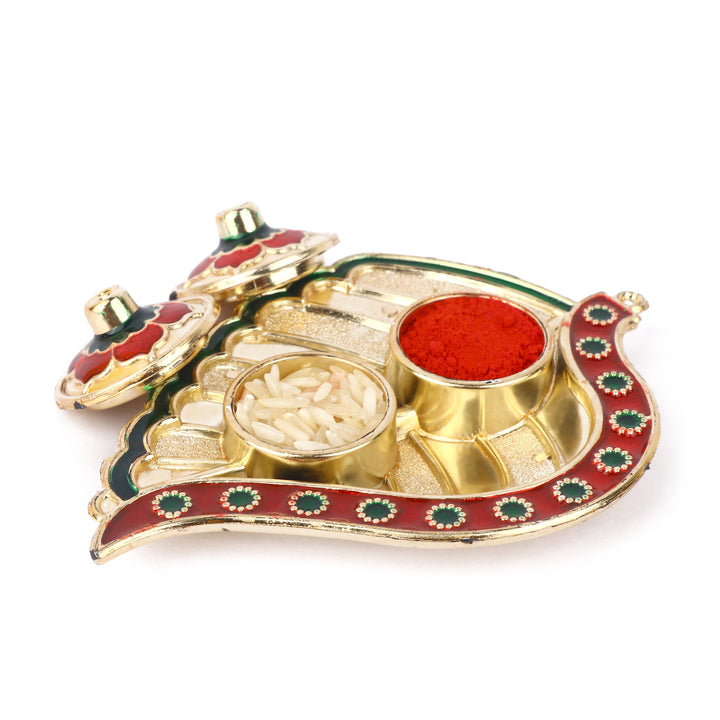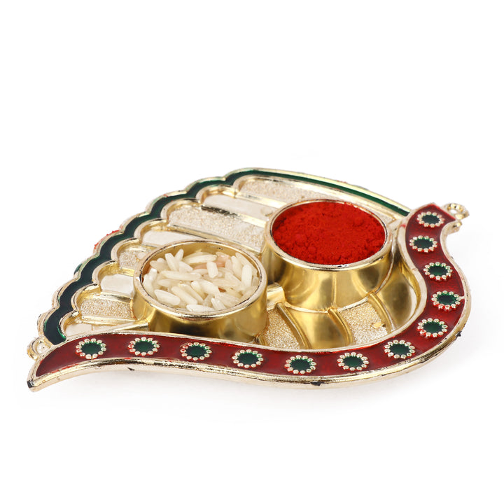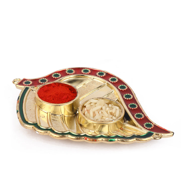 • Item Name:  Beautiful Roli Akshat Leaf Platter