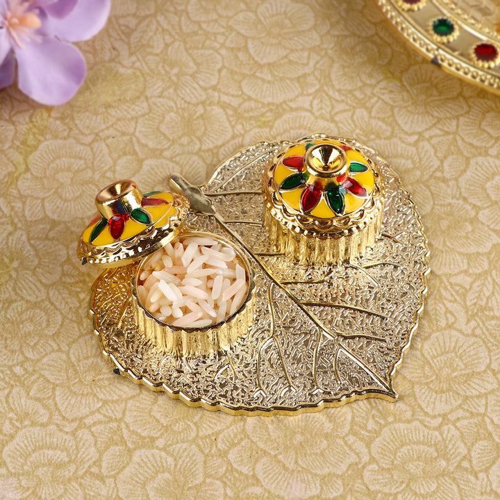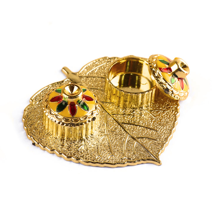 Buy Beautiful Roli Akshat Small Pan Leaf Platter | Satvikstore.in – satvikstore.in