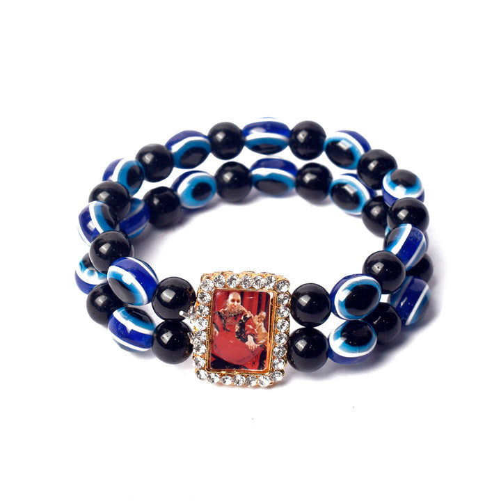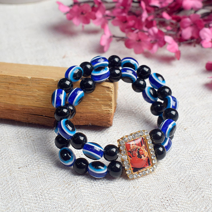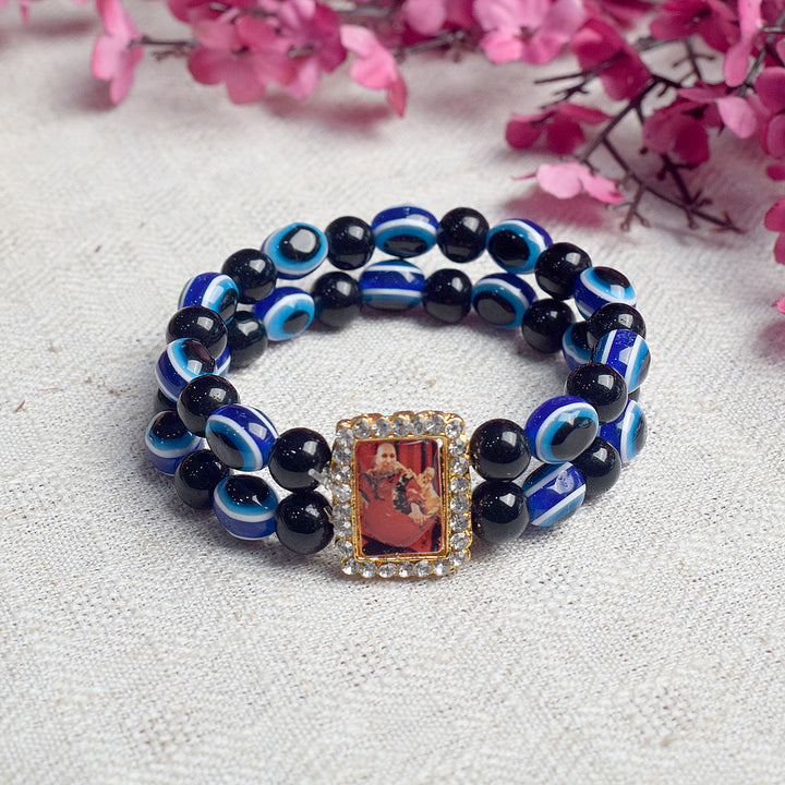 Black and Blue Evil Eye Round Pearl Bracelet with Jai Guruji Swaroop