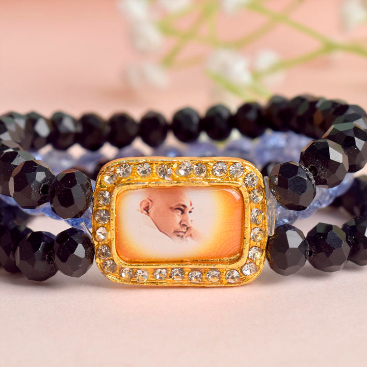 Buy Online | Black Purplish Blue Triple Layer Guruji Swaroop Bracelet | satvikstore.in