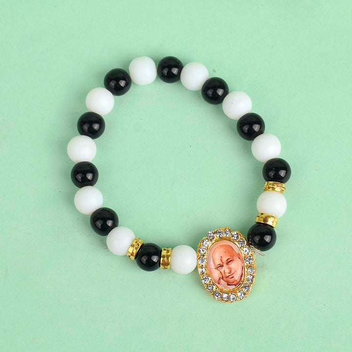 Black & White Beads Single Layer Guruji Swaroop Bracelet